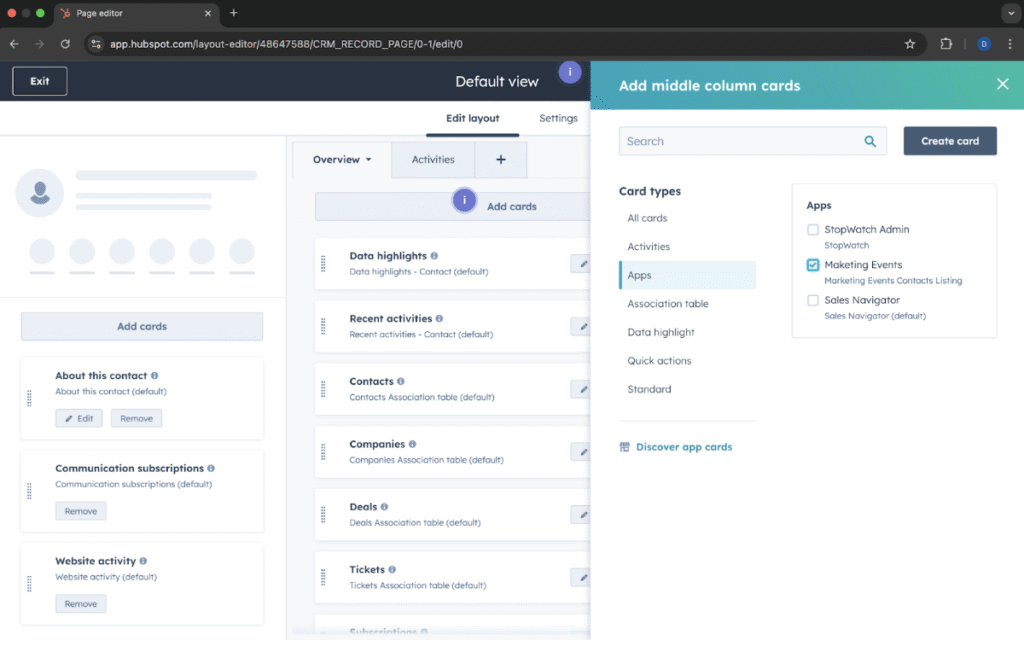 Add a Marketing Event Card: