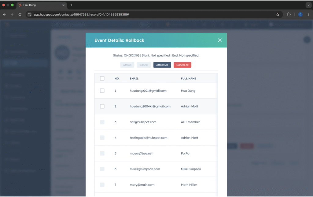 Hubspot – Marketing Event Contact Listing App